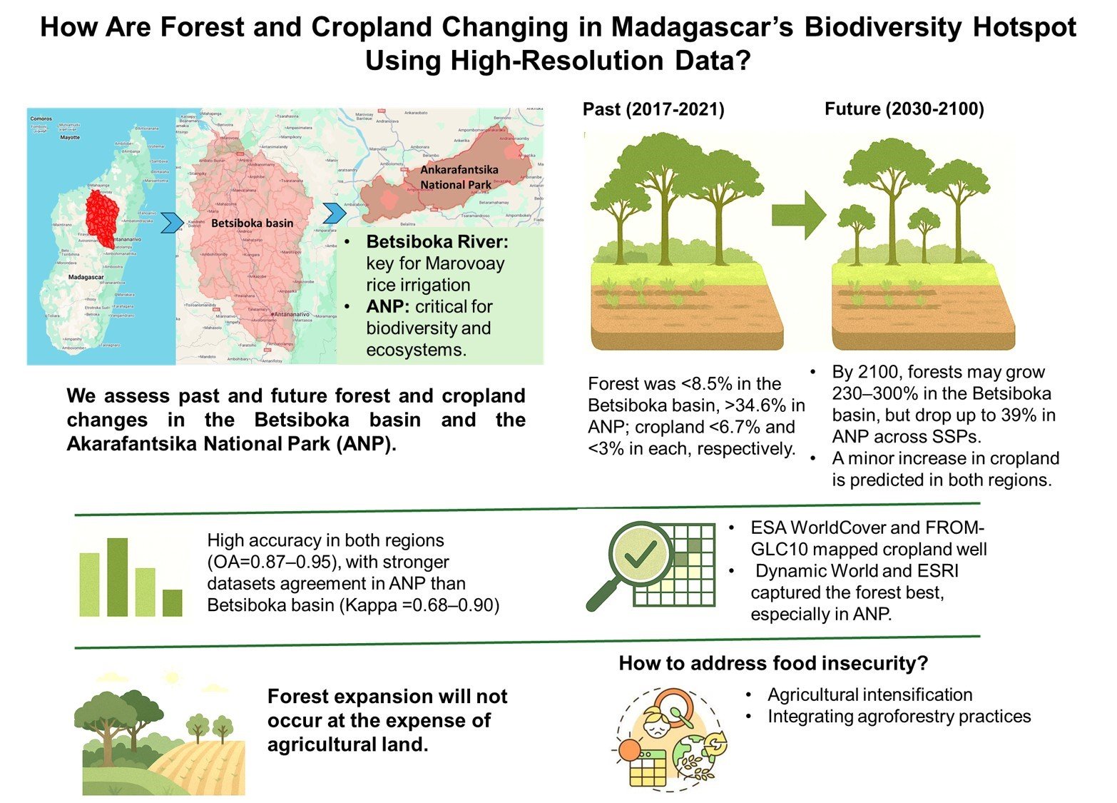 The lack of reliable methods for cropland and forest monitoring remains a challenge in the Betsiboka basin and Ankarafantsika National Park (ANP), Madagascar. A key novelty of our study is the comparative analysis of multiple high-resolution datasets for 2017 and 2021 and future