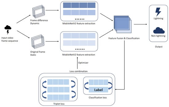 To address the challenges of scarce labeled samples, strong instantaneity, and variable morphology in lightning optical classification—issues that traditional methods struggle to handle efficiently and often require extensive manual intervention—we propose a frame difference triplet network (FD-TripletNet) tailored for few-shot lightning recognition. The