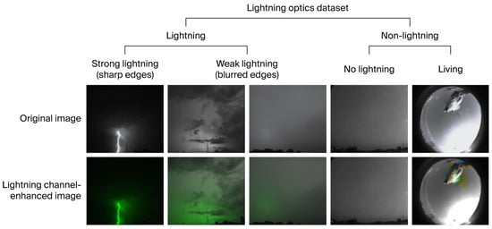 To address the challenges of scarce labeled samples, strong instantaneity, and variable morphology in lightning optical classification—issues that traditional methods struggle to handle efficiently and often require extensive manual intervention—we propose a frame difference triplet network (FD-TripletNet) tailored for few-shot lightning recognition. The lightning optical dataset used in this study was collected from two observation stations over six months, comprising 459 video samples that include lightning events with diverse morphologies (e.g., branched, spherical) and non-lightning events prone to misclassification (e.g., strong light interference, moving objects). Considering the critical feature of lightning—abrupt single-frame changes—we introduce adjacent frame difference matrices as model input to explicitly capture transient brightness variations, reducing noise from static backgrounds. To enhance discriminative ability in few-shot scenarios, the model leverages Triplet Loss to compact intra-class features and separate inter-class features, combined with a dynamic sample matching strategy to focus on challenging cases. The experimental results show that FD-TripletNet achieves a classification accuracy of 94.8% on the dataset, outperforming traditional methods and baseline deep learning models. It effectively reduces the False Negative Rate (FNR) to 3.2% and False Positive Rate (FPR) to 7.4%, successfully distinguishing between lightning and non-lightning events, thus providing an efficient solution for real-time lightning monitoring in meteorological applications.