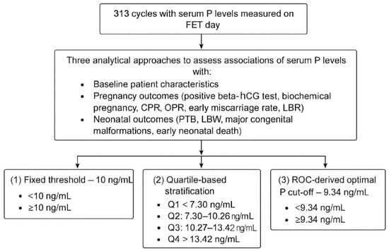 Background/Objectives: Serum progesterone (P) levels on the day of frozen–thawed embryo transfer (FET) appear to influence treatment success. Some studies suggest that low P levels may negatively affect pregnancy outcomes, whereas others report a detrimental impact of elevated p values. Although a