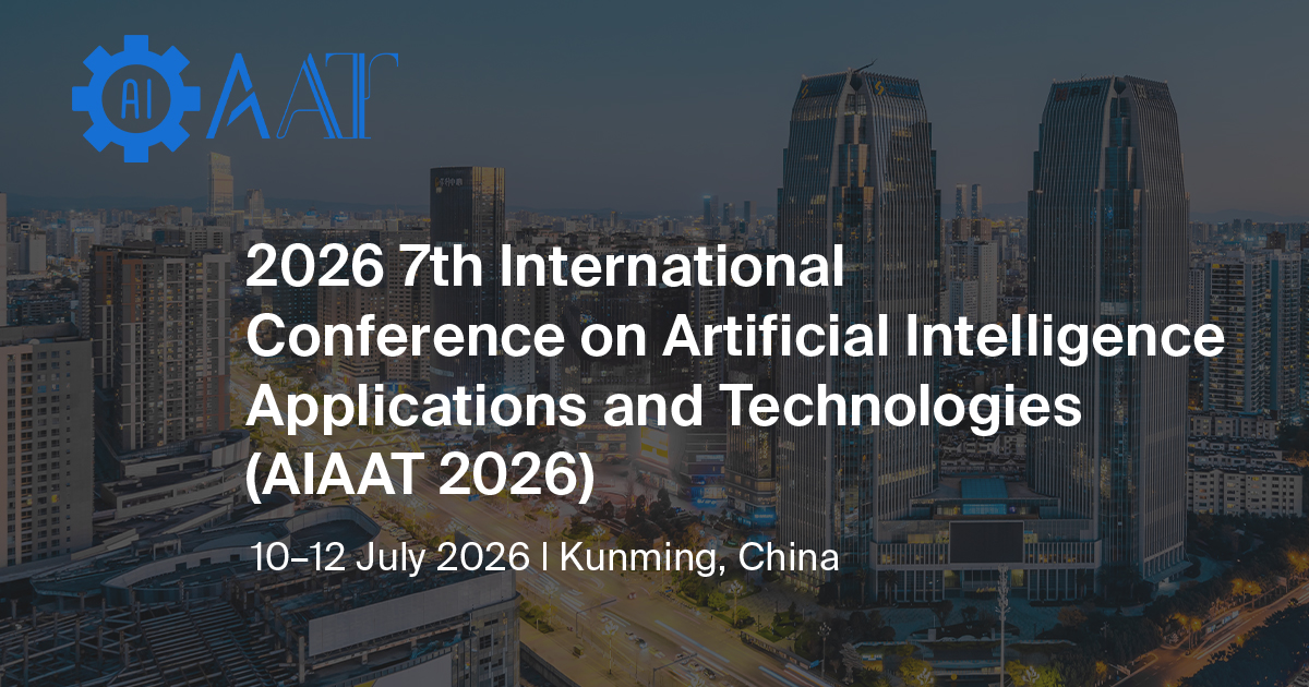 Welcome to the official website of the 2026 7th International Conference on Artificial Intelligence Applications and Technologies (AIAAT 2026). AIAAT 2026 will be held in Kunming, China, from 10 to 12 July 2026 and is co-organized by Kunming University of Science and Technology and Hong Kong Society of Mechanical Engineers (HKSME), with media support provided by Digital Technologies Research and Applications.