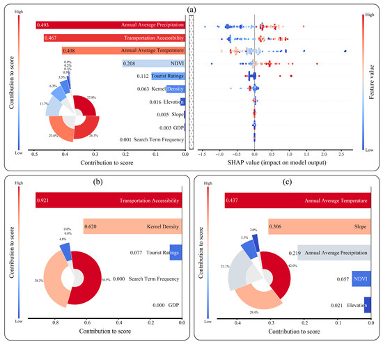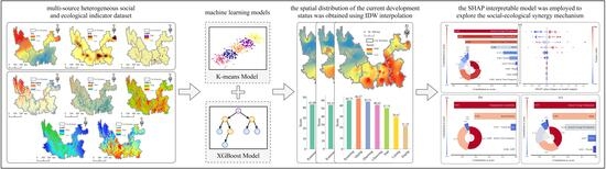 Against the backdrop of the accelerated integration of culture and tourism in China, red cultural tourism, as an important component of China’s cultural tourism system, urgently requires a systematic assessment of its development status and synergistic impact mechanisms. This study takes the Long March tourism resources in Yunnan as the research object and constructs a comprehensive evaluation system integrating social influence and ecological carrying capacity. By applying GIS spatial analysis, as well as K-means and XGBoost machine learning models, the development level of red cultural tourism in Yunnan is quantitatively assessed. Furthermore, the interpretable SHAP model is employed to identify the contribution of each evaluation indicator and to analyze the relationships among development levels under three different indicator models. The results reveal that (1) the development level of red cultural tourism in Yunnan generally exhibits a spatial pattern of being lower in the northwest and higher in the southeast; (2) transportation accessibility (TA), average annual precipitation (AAP), and average annual temperature (AAT) are the dominant indicators influencing the development level; (3) there are significant disparities in development levels among cities, indicating that future development needs to comprehensively consider both the social influence and ecological carrying capacity of red cultural tourism resources and adhere to a “social–ecological” synergistic development mechanism. This study not only uncovers the synergistic impacts of social and ecological dimensions on the development of red cultural tourism in Yunnan but also provides theoretical and data support for the optimization and sustainable development of Yunnan’s red cultural tourism resources.
