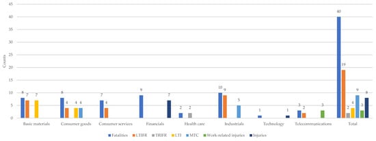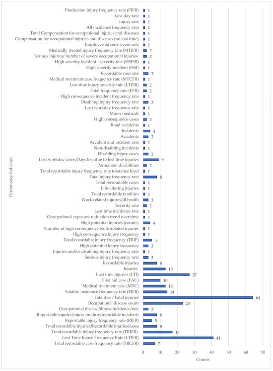 Employers in South Africa are mandated by labour laws to implement systems of work for the maintenance and promotion of health and safety at work. In response, companies have adopted and implemented occupational health and safety management systems (OHSMSs) whose effectiveness should be continuously monitored through performance measurement. However, there remains no national convention on the specific performance measurement indicators for companies to use. The objective of this study was to determine, characterise and compare lagging indicators adopted and reported by the top 150 Johannesburg Stock Exchange (JSE)-listed companies in South Africa. This qualitative study evaluated annual reports and data books from these companies by analysing textual data through qualitative document analysis. Only 87 of the 150 case companies reported performance using lagging indicators. The basic materials, consumer goods, consumer services and industrial sectors had the most companies which reported performance metrics. Fatality count and lost time injury frequency rate (LTIFR) were the most commonly reported performance metrics and were reported by 64 and 41 companies, respectively. There was variation in the number, type and form of adopted lagging indicators by the case companies. Companies in the manufacturing and mining sectors were more likely to report OHS performance, in general, than those in other sectors. The observed variation across sectors emphasises the need for harmonised indicators to measure and report OHS performance in South Africa.