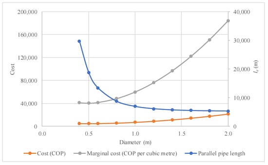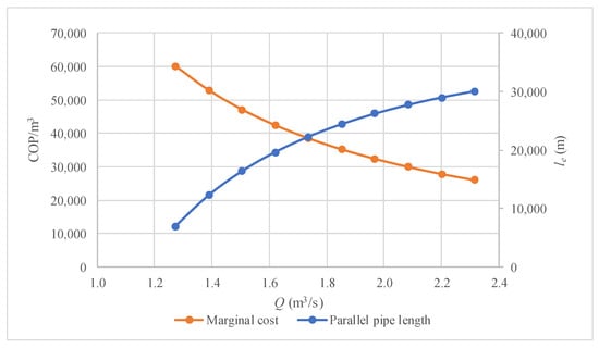Water supply networks in both developed and developing major cities worldwide were constructed many years ago. Currently, these systems face numerous challenges, including population growth, climate change, emerging technologies, and the policies implemented by local governments. Such factors can impact the design life of water infrastructure, leading to service pressure deficiencies. Consequently, water infrastructure must be reinforced to ensure an adequate and reliable service. This research presents the development of an analytical formulation for hydraulic installations with a pumping station, enabling the calculation of requirements for a new parallel pipeline within an existing water system without altering the current pipe resistance class. To implement the proposed solution, it is essential to maintain the initial pump head by adjusting the impeller size. A construction cost assessment is also undertaken to identify the most cost-effective reinforcement strategy, acknowledging that pipe costs vary significantly with diameter and material, and are proportional to the square of the diameter. The proposed methodology is applied to a 30 km pipeline with a 10% increase in demand, showing that a new parallel pipe of the same diameter as the existing hydraulic installation must be installed to minimise construction costs. A multi-parametric analysis was conducted employing machine learning presets with 309 dataset points.