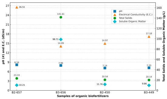 The recovery of livestock waste through multistage anaerobic digestion represents a key strategy for producing high-efficiency liquid biofertilizers within circular economy frameworks. This study compared two underexplored substrates—guinea pig manure and vermicompost leachate (VL)—processed in series biodigesters to evaluate their nutrient composition and agronomic performance. The guinea pig manure biol exhibited higher macronutrient concentrations (N = 1.09–3.74 g L−1; P = 0.06–0.64 g L−1; K = 1.85–3.20 g L−1) and electrical conductivity (14.1–26.5 mS cm−1), while VL presented a more balanced nutrient profile (N = 0.65–0.71 g L−1; P = 0.04–0.09 g L−1; K = 2.46–3.76 g L−1) and slightly lower salinity (15.0–17.2 mS cm−1). Micronutrient levels (Fe, Mn, Zn, B) exceeded the reference thresholds established by EU Regulation 2019/1009 for liquid fertilizers, suggesting the need for dilution prior to field application. In maize field trials, VL diluted 1:7 increased above-ground biomass by 28%, and guinea pig biol diluted 1:10 achieved a 22% increase compared to the control, confirming their biostimulant potential. However, the high sodium content (848–1024 mg L−1) may limit application on saline or poorly drained soils, requiring adaptive agronomic management. These findings demonstrate that multistage anaerobic digestion effectively transforms unconventional organic waste into nutrient-rich biofertilizers, expanding the scientific foundation for alternative substrates and reinforcing their potential to enhance Andean smallholder agriculture, nutrient recycling, and food security within a sustainability-oriented bioeconomy.