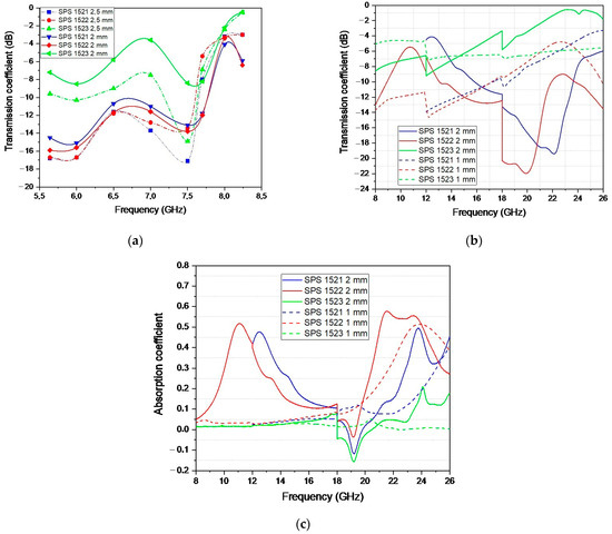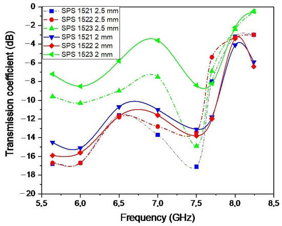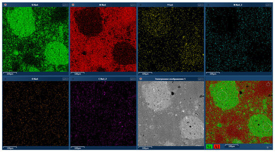 In this paper, the dependence of the microstructure and properties on Spark Plasma Sintering modes of an AlN-35 β-SiC (wt.%) composite is investigated. It was found that the use of a heating rate of 100 °C/min during the sintering process of the AlN-35 β-SiC (wt.%) composite leads to the formation of a solid solution (AlN)x–(SiC)x−1 at 1900 °C during 5 min, and under a pressure of 50 MPa. It was observed that, at a heating rate of 50 °C/min and a pressure of 25 MPa, yttrium oxide used as a sintering additive impedes the diffusion of SiC into AlN. This impedes the formation of a solid solution (AlN)x–(SiC)x−1 and helps preserve SiC grains, which act as the main absorbing phase in the obtained composites. It is shown that the use of sintering additives and SPS technology allows obtaining samples with a density of 3.26 g/cm3, which coincides with the theoretical value of the composite. The dielectric characteristics and absorbing properties of sintered materials are determined in the frequency bands from 5.6 to 26 GHz. It has been discovered that the reflection, transmission, and absorption coefficients can be regulated depending on the thickness of the sample. In addition, it is shown that composites containing solid solutions and silicon carbide grains in their structures have the best absorbing properties. On the other hand, the material containing only solid solutions is a promising material that can be used as microwave filters.