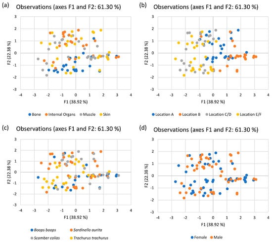 The Mediterranean Sea is recognized for its high biodiversity but is also a hotspot for pollution. In this study, fish samples of four native marine species were collected from wild catches to determine contaminants such as Anisakis parasites and heavy metals, including nickel, lead, copper, zinc, and chromium, within local marine fish species. The detection of Anisakis parasites was performed by a visual inspection and a digestion method. Metal analysis was carried out on skin, muscle, viscera, and bones of fish, using Microwave Plasma-Atomic Emission Spectroscopy. This study demonstrated that Boops boops was the least infested species by Anisakis parasite, while Scomber colias was the most infested, with Sardinella aurita and Trachurus trachurus showing a lower infestation rate. Pearson correlation statistics revealed that infestation correlated with fish size but not with maturity or sex. Principal component analysis (PCA) demonstrated that the carnivorous species were more prone to Anisakis infestation than the omnivorous species. The maximum levels of copper, nickel, chromium, lead, and zinc content in fish tissues were 13.2 ± 0.11, 19.5 ± 0.02, 19.9 ± 0.01, 28.8 ± 0.09, and 184.87 ± 0.63 µg/g, respectively. PCA revealed that heavy metal contamination does not discriminate between fish species and sex, as opposed to tissue type and location of catch. Some metals, such as zinc and lead, seem to accumulate more in muscle rather than the other tissues. These findings indicate that Anisakis infestation and heavy metal analysis should be monitored and extended beyond the current EU requirements.