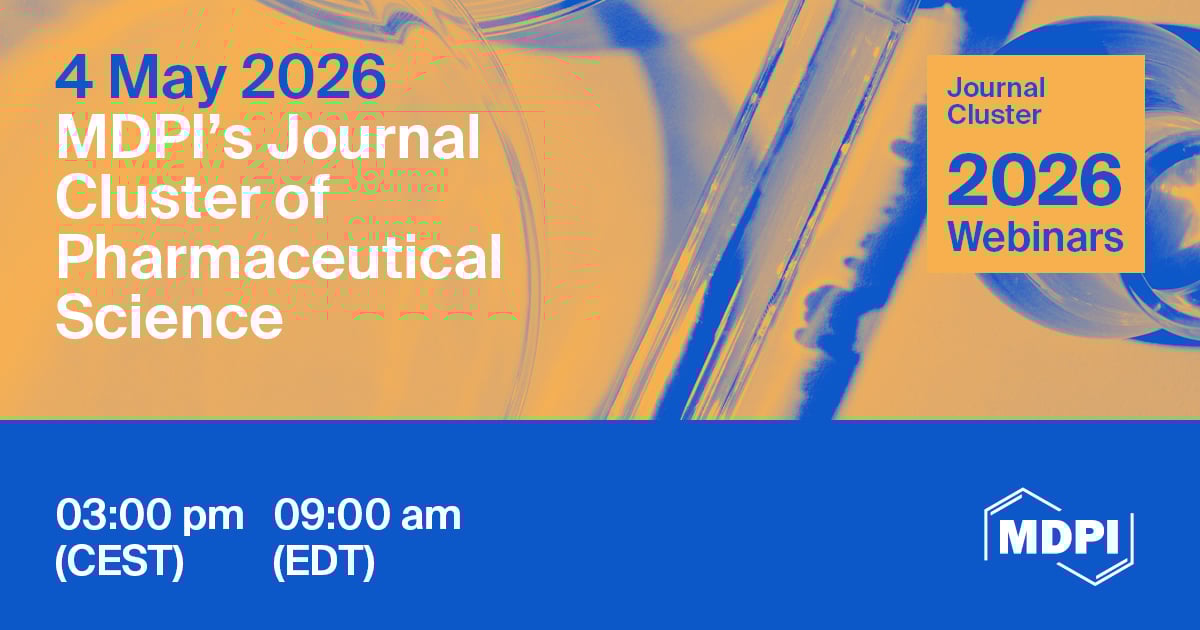 - Journal Clusters-Pharmaceutical Science: Scientia Pharmaceutica, Marine Drugs, Pharmaceuticals, Pharmaceutics, Pharmacy, Future Pharmacology, Pharmacoepidemiology, Drugs and Drug Candidates and Journal of Pharmaceutical and BioTech Industry.