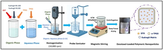 Docetaxel (DTX)-loaded polymeric nanoparticles composed of Eudragit RL and RS 100 were developed by solvent evaporation using D-α-tocopheryl polyethene glycol 1000 succinate as an emulsifier and optimised by Central Composite Design. The effects of homogenisation and sonication times on entrapment efficiency (%EE) and