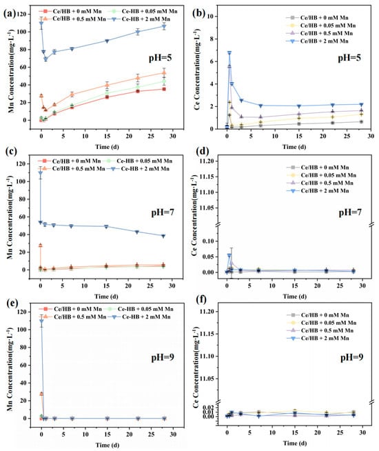 Birnessite has a strong ability to fix rare-earth elements (REEs), but the transformation process of birnessite and its effects on the migration of these elements are not well understood. This study examines how pH and Mn(II) concentrations influence the transformation of cerium-adsorbed hexagonal