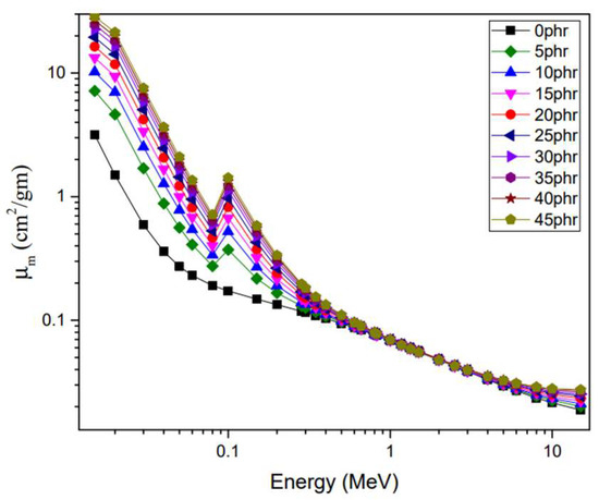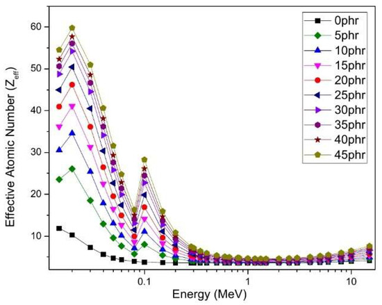 This research entailed the production of composite materials through the combination of natural rubber and acrylonitrile butadiene rubber, along with nano-silica-loaded bismuth (III) oxide, in varying concentrations ranging from 0 to 45 parts per hundred parts of rubber (phr). The gamma attenuation properties of the composites at different concentrations of Bi2O3 were measured. Additionally, the mechanical properties of the resulting composites, including hardness, tensile strength, and elongation, were tested. The composites with a concentration of 20 phr exhibited the highest tensile strength and elongation at break, followed by a subsequent decrease as the concentration of Bi2O3 increased. The gamma mass-attenuation coefficient of the composites increased as the Bi2O3 concentration increased from 0 to 45 phr, with values ranging from 0.083 to 0.090 cm2/g at 0.662 MeV. Moreover, the fast neutron mass removal cross-sections ranged from 0.092 to 0.072 cm2/g, corresponding to the variation of Bi2O3 concentration from 0–45 phr are also determined. Various parameters related to gamma-ray shielding, including the half-value layer, exposure build-up factor (EBF) up to 40 mean free path (mfp) penetration depth, and effective atomic number (Zeff) are also included. The radiation-induced aging of the prepared blend is tested by measuring the effect of radiation exposure on its shielding capability via its porosity change. The obtained results indicated that the prepared composites could be used for several radiation-protection applications.