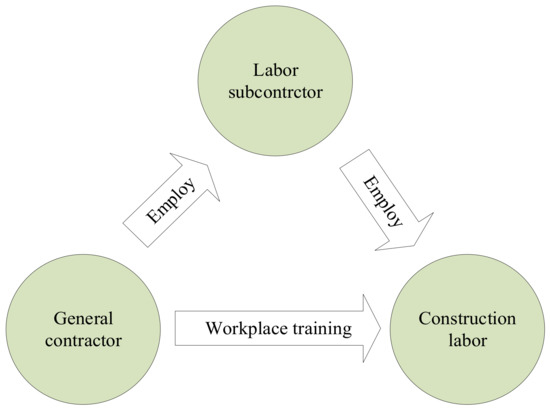 A shortage of skilled laborers has constrained the new development path called Construction 4.0, which is proposed to improve the construction industry with advanced technologies. It should be noted that the mismatch between labor skills and technological progress will harm the sustainable development of the construction sector. In China, a three-tier management structure consisting of contractors, labor subcontractors, and laborers is widespread in the labor market. Considering the relationship between laborers and construction firms, promoting construction labor professionalization depends on the cooperation of general contractors and labor subcontractors. Previous studies have focused on training techniques and methods, but have neglected to investigate whether stakeholders are willing to cooperate in training labor. Considering that the standard workforce is more likely to receive human resource investment, this paper aims to analyze the strategic choice of related stakeholders in cultivating the standard workforce. Since evolutionary game theory has proven to be an effective method to study the symbiotic evolution between stakeholders, this paper will apply it to develop an evolutionary game model and conduct analysis. Moreover, this research examines how government incentive policy affects the dynamic evolution process of cultivating a standard workforce. The results suggest that without government incentives, general contractors and labor subcontractors tend to choose a contingent workforce. When the government subsidy reaches a certain level, general contractors and labor subcontractors are willing to cooperate in cultivating a standard workforce. Additionally, it is worth noting that compensation for labor subcontractors is relatively more effective than that for general contractors in promoting construction labor professionalization. Furthermore, some suggestions and countermeasures are proposed to help to cultivate a standard workforce in China.