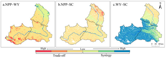 The Taohe River Basin is an essential ecological function area in the upper reaches of the Yellow River. Understanding the intricate trade-offs and synergies between ecosystem services (ESs) and exploring the impact of different factors are essential for achieving win–win outcomes in ecosystem