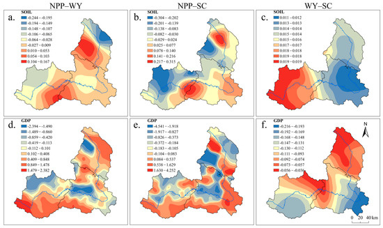 The Taohe River Basin is an essential ecological function area in the upper reaches of the Yellow River. Understanding the intricate trade-offs and synergies between ecosystem services (ESs) and exploring the impact of different factors are essential for achieving win–win outcomes in ecosystem management and socioeconomic development. The role of impact factors on the relationship between ESs, nevertheless, is more challenging to spatialize. This study used different models to estimate the net primary productivity (NPP), water yield (WY), and soil conservation (SC), and analyzed synergies and trade-offs between Ess. The spatial heterogeneity of the effects of natural and social factors on the relationships between Ess was explored using a geographic detector and a multi-scale geographically weighted regression (MGWR) model. The results show that: (1) NPP, WY, and SC all exhibit a rising trend, with multi-year averages of 488.99 gC/m2, 157.29 mm, and 1441.51 t/hm2, respectively; (2) NPP–WY and NPP–SC exhibit trade-offs in the majority of regions, while WY–SC are primarily synergistic in the upper and middle reaches, and they have the highest percentage of cropland, forest, and grassland; and (3) precipitation (PRE) has the greatest impact on the trade-off between NPP–WY and NPP–SC in the upper and middle reaches, and the gross domestic product (GDP), population density (POP), and distance from cropland (CROP) are the primary factors determining the synergy between NPP and WY in the lower reaches of the Loess Plateau cropping sector. PRE, digital elevation model (DEM), and CROP are the primary impact factors affecting the synergy of WY–SC. This study may serve as a reference for examining the evolutionary mechanism underlying the trade-offs and synergies between ESs and provide a scientific basis for future ecological environmental protection and regional land management in the Taohe River Basin.