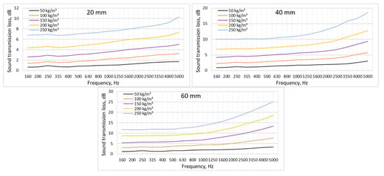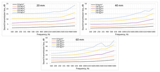Nowadays, in order to follow the trends and principles of sustainability, natural materials are often investigated in acoustics and noise prevention. Hemp fibre is a sustainable alternative to conventional sound-absorbing or insulating materials. The aim of the research is to investigate the acoustic properties of different types of hemp fibre. Five different types of hemp fibre were tested: bleached, cottonized, boiled cottonized, well-stripped decorticated, and short, not combed decorticated fibres. The hemp fibre samples were varied in thickness from 20, 40, and 60 mm and density from 50 to 250 kg/m3 in steps of 50 kg/m3. The sound transmission loss of the material was measured using an impedance tube. In order to predict the sound absorption properties of the samples, the airflow resistivity of the hemp fibre was determined. Based on the theoretical calculations proposed by Delany, Bazley, and Miki, a theoretical analysis of the sound absorption of hemp fibre was performed. In order to determine the dependence on different fibre types, all fibres were examined using SEM. It has been found that hemp fibre can be used as an insulating or sound-absorbing material in noise prevention, as a sustainable alternative to conventional materials.