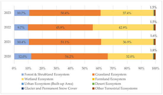 Promoting the value realization of ecological products is a central issue in practicing the concept that “lucid waters and lush mountains are invaluable assets.” This is particularly urgent for alpine regions, which are vital ecological security barriers but face stringent developmental constraints. This study takes Golog Tibetan Autonomous Prefecture in Qinghai Province as a case study. It establishes a Gross Ecosystem Product (GEP) accounting framework tailored to the characteristics of alpine ecosystems and conducts continuous empirical accounting for the period 2020–2023. The findings reveal that: (i) The total GEP of Golog is immense (reaching 655.586 billion yuan in 2023) but exhibits significant dynamic non-stationarity driven by climatic fluctuations, with a coefficient of variation as high as 11.48%. (ii) The value structure of the GEP is highly unbalanced, with regulatory services contributing over 97.6%. Water conservation and biodiversity protection are the two pillars, highlighting its role as a supplier of public ecological products and the predicament of market failure. (iii) The spatial distribution of GEP is highly heterogeneous. Maduo County, comprising 34% of the prefecture’s land area, contributes 48% of its total GEP, with its value per unit area being 1.68 times that of Gande County, revealing the spatial agglomeration of key ecosystem services. To address the dynamic, structural, and spatial constraints identified by these quantitative features, this paper proposes synergistic realization pathways centered on “monetizing regulatory services,” “precision policy regulation,” and “capacity and institution building”. The aim is to overcome the systemic bottlenecks—“difficulties in measurement, trading, coarse compensation, and weak incentives”—in alpine ecological functional zones. This provides a systematic theoretical and practical solution for fostering a virtuous cycle between ecological conservation and regional sustainable development.