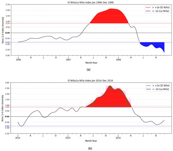 Peatlands play a critical role in global and regional climate regulation by functioning as long-term carbon sinks, regulating hydrology, and modulating land–atmosphere energy exchange. Intact peat ecosystems store large amounts of organic carbon and stabilize local climate through high water retention and evapotranspiration, whereas peatland degradation disrupts these functions and can transform peatlands into significant sources of greenhouse gas emissions and climate extremes such as drought and fire. Indonesia contains approximately 13.6–40.5 Gt of carbon, around 40% of which is stored on the island of Sumatra. However, tropical peatlands in this region are highly vulnerable to climate anomalies and land-use change. This study investigates the impacts of major climate anomalies—specifically El Niño and positive Indian Ocean Dipole (pIOD) events in 1997/1998, 2015/2016, and 2019—on peatland cover change across South Sumatra, Jambi, Riau, and the Riau Islands. Landsat 5 Thematic Mapper and Landsat 8 Operational Land Imager/Thermal Infrared Sensor imagery were analyzed using a Random Forest machine learning classification approach. Climate anomaly periods were identified using El Niño-Southern Oscillation (ENSO) and IOD indices from the National Oceanic and Atmospheric Administration. To enhance classification accuracy and detect vegetation and hydrological stress, spectral indices including the Normalized Difference Vegetation Index (NDVI), Modified Soil Adjusted Vegetation Index (MSAVI), Normalized Difference Water Index (NDWI), and Normalized Difference Drought Index (NDDI) were integrated. The results show classification accuracies of 89–92%, with kappa values of 0.85–0.90. The 2015/2016 El Niño caused the most severe peatland degradation (>51%), followed by the 1997/1998 El Niño (23–38%), while impacts from the 2019 pIOD were comparatively limited. These findings emphasize the importance of peatlands in climate regulation and highlight the need for climate-informed monitoring and management strategies to mitigate peatland degradation and associated climate risks.