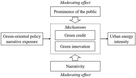 Reducing energy intensity is critical for combating climate change, yet current progress remains insufficient to meet international targets. Green-oriented policy narratives hold significant potential for mitigating energy intensity, but existing research lacks regional-level quantitative analysis. This study examines how green-oriented policy narratives influence urban energy intensity. We analyze textual data from Chinese provincial Party newspapers using large language models and LDA topic modeling to measure narrative-related variables, then combine these measures with panel data from 288 Chinese cities spanning 2010–2022. The findings reveal that green-oriented policy narrative exposure significantly reduces urban energy intensity through promoting green credit development and stimulating green innovation, with the negative effect strengthening as the prominence of the public and narrativity of narratives increase. Heterogeneity analysis further shows that narrative effectiveness is amplified in cities with higher internet penetration and marketization levels. This study broadens research on energy intensity determinants beyond traditional policy instruments, extends green-oriented narrative effects from the micro to macro level, and offers insights for leveraging narratives and contextual conditions to promote energy conservation.