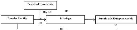 Sustainable entrepreneurship is essential for promoting the integrated development of economic, environmental, and social systems, particularly in emerging economies such as China. Drawing on social identity theory and resource bricolage theory, this study examines how founder identity influences sustainable entrepreneurial behavior and also explores the mediating role of entrepreneurial bricolage and the moderating effect of perceived uncertainty. Using survey data from 210 Chinese new ventures, the hypotheses were tested by structural equation modeling and moderated mediation analysis. The empirical results indicate that founder identity positively influences sustainable entrepreneurship, with entrepreneurial bricolage partially mediating this relationship. Moreover, perceived uncertainty weakens the positive relationship between founder identity and bricolage. It also reduces the indirect effect of bricolage on sustainable entrepreneurship, indicating that higher uncertain environments constrain entrepreneurs’ willingness to rely on bricolage as a resource acquisition strategy. By elucidating the underlying mechanisms and boundary conditions through which founder identity influences sustainable entrepreneurial behavior, this study enriches micro-level research on sustainable entrepreneurship. It also provides practical insights for entrepreneurs and policymakers in strengthening strategic resilience and fostering the development of sustainable entrepreneurship.