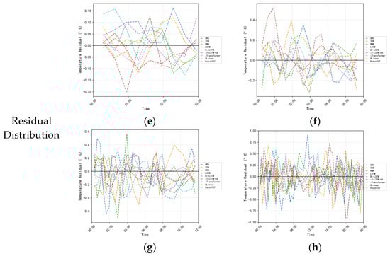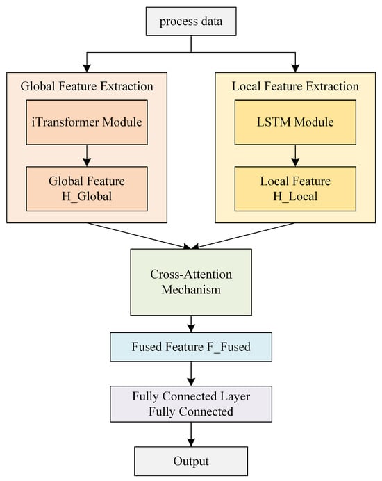Constructing a temperature and humidity prediction model for greenhouse-grown tomatoes is of great significance for achieving resource-efficient and sustainable greenhouse environmental control and promoting healthy tomato growth. However, traditional models often struggle to simultaneously capture long-term temporal trends, short-term local dynamic variations, and the coupling relationships among multiple variables. To address these issues, this study develops an iT-LSTM-CA multi-step prediction model, in which the inverted Transformer (iTransformer, iT) is employed to capture global dependencies across variables and long temporal scales, the Long Short-Term Memory (LSTM) network is utilized to extract short-term local variation patterns, and a cross-attention (CA) mechanism is introduced to dynamically fuse the two types of features. Experimental results show that, compared with models such as Gated Recurrent Unit (GRU), Temporal Convolutional Network (TCN), Recurrent Neural Network (RNN), LSTM, and Bidirectional Long Short-Term Memory (Bi-LSTM), the iT-LSTM-CA achieves the best performance in multi-step forecasting tasks at 3 h, 6 h, 12 h, and 24 h horizons. For temperature prediction, the R2 ranges from 0.96 to 0.98, with MAE between 0.42 °C and 0.79 °C and RMSE between 0.58 °C and 1.06 °C; for humidity prediction, the R2 ranges from 0.95 to 0.97, with MAE between 1.21% and 2.49% and RMSE between 1.78% and 3.42%. These results indicate that the iT-LSTM-CA model can effectively capture greenhouse environmental variations and provide a scientific basis for environmental control and management in tomato greenhouses.