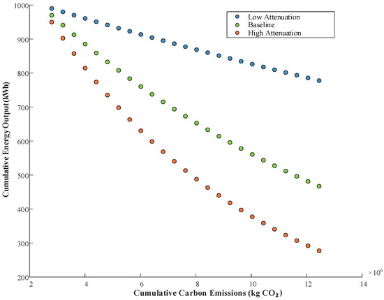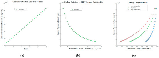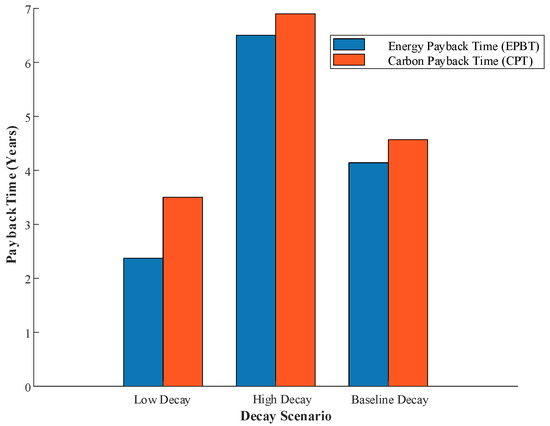 A Life cycle assessment (LCA) is widely used to evaluate the carbon reduction potential of polycrystalline silicon photovoltaic systems. However, in existing LCA methods, most studies use static attenuation models and fixed lifecycle boundary frameworks. Therefore, this study proposes a dynamic LCA framework that considers the attenuation rate changes in photovoltaic systems and the energy gain during the recovery phase. The innovation of this method lies in its ability to more accurately reflect the carbon emissions and energy recovery period (EPBT) of photovoltaic systems under different operating and attenuation scenarios. In addition, this article expands the application scope of the LCA by introducing new boundary conditions, providing a new perspective for the lifecycle assessment of photovoltaic systems. A practical carbon emission calculation model was established using the full lifecycle data within this boundary, and the quantitative relationship between the EPBT and power generation was derived. A three-dimensional dynamic coupling model was developed to integrate these three key parameters and continuously characterize the dynamic behavior of the system throughout its entire lifecycle. This model explicitly addresses the attenuation of photovoltaic modules in three scenarios: low (1%), baseline (3%), and high (5%) attenuation rates. The results show that under low attenuation, the average EPBT is 4.14 years, which extends to 6.5 years under high attenuation and only 2.37 years under low attenuation. Sensitivity analysis confirmed the effectiveness of the model in representing the dynamic evolution of photovoltaic systems, providing a theoretical basis for subsequent environmental performance evaluations.