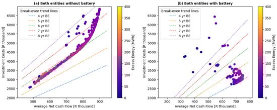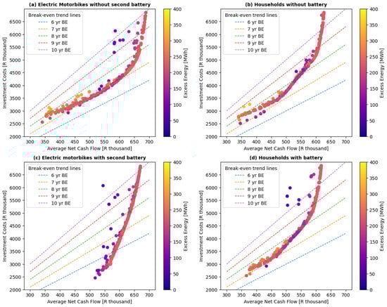 South Africa faces high energy costs, highlighting the urgent need for sustainable and cost-effective energy solutions. This study investigates the design of a cost-effective photovoltaic energy system that maximises savings and revenue for the school through energy trading. In this study, the school trades with 14 neighbouring households and 125 electric motorbikes. This research first applies Latin Hypercube Sampling to explore the solution space and determine which system parameters have a significant impact on supply reliability, investment costs, revenue and savings. Optimal solutions are generated using Non-Dominated Sorting Genetic Algorithm II for a range of system scenarios. Following this, the most promising scenario is selected and applied to 53 schools in the Western Cape. The results show that number of panels strongly correlates with both supply reliability and revenue, thus reducing the break-even years, while battery capacity affects investment costs and, to some extent, break-even years. Among the configurations tested, scenarios where schools traded with both households and electric motorbikes, particularly when both included their own battery systems, achieved the most favourable financial performance for the school, with break-even periods of less than five years under sufficient roof area and improved reliability for the external entities, with an average improvement of 60%. These findings demonstrate that peer-to-peer energy trading between schools and communities can enhance the financial feasibility and sustainability of decentralised solar systems, offering a scalable model for improving energy access and affordability in South Africa and possibly other developing countries.