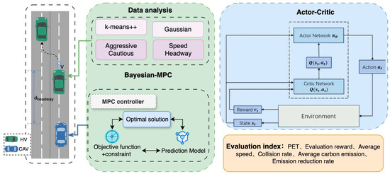 The heterogeneity of human driving styles in mixed-traffic environments manifests as divergent decision-making behaviors in complex scenarios like highway merging. By accurately recognizing these driving styles and predicting corresponding trajectories, autonomous vehicles can enhance safety, improve traffic efficiency, and concurrently achieve fuel savings in highway merging scenarios. This paper proposes a novel framework wherein a clustering algorithm first establishes statistical priors of driving styles. These priors are then integrated into a Model Predictive Control (MPC) model that leverages Bayesian inference to generate a probability-aware trajectory prediction. Finally, this predicted trajectory is embedded as a component of the state input to a reinforcement learning agent, which is trained using an Actor–Critic architecture to learn the optimal control policy. Experimental results validate the significant superiority of the proposed framework. Under the most challenging high-density traffic scenarios, our method boosts the evaluation reward by 11.26% and the average speed by 10.08% compared to the baseline Multi-Agent Proximal Policy Optimization (MAPPO) algorithm. This advantage also persists in low-density scenarios, where a steady 10.60% improvement in evaluation reward is achieved. These findings confirm that the proposed integrated approach provides an effective decision-making solution for autonomous vehicles, capable of substantially enhancing interaction safety and traffic efficiency in emerging mixed-traffic environments.
