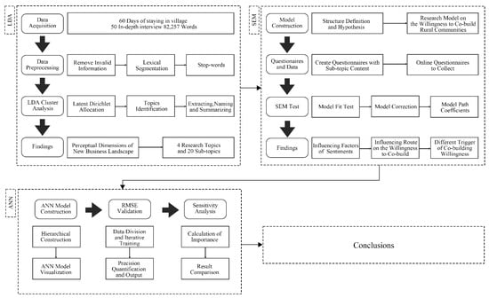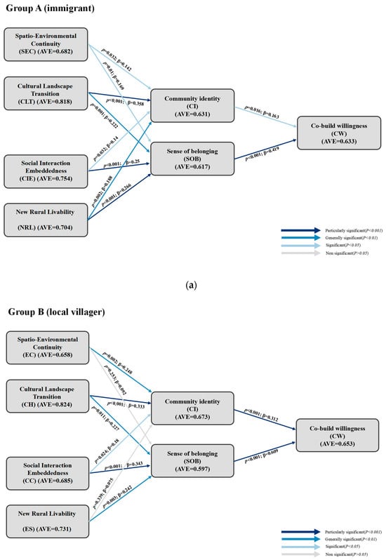 Rural gentrification is transforming China’s countryside, yet the ways gentrified landscapes shape community co-build willingness across social groups remain unclear. Guided by the Hierarchy Effects Model (HEM) and Martin Phillips’ four-dimensional view of rural landscapes (material, symbolic, social, and living), this study develops a “landscape–emotion–intention” framework linking spatial–environmental continuity, cultural landscape transition, social interaction embeddedness, and new rural livability to community identity, sense of belonging, and co-build willingness. Based on 50 in-depth interviews in She Village, Nanjing, latent Dirichlet allocation (LDA) is used to extract key themes, which are combined with the four-dimensional framework to construct a 25-item questionnaire; 376 valid responses from immigrants and local villagers are then examined through multi-group structural equation modeling and artificial neural networks for robustness and importance analysis. Results indicate that cultural landscape transition and new rural livability are the main drivers of identity and belonging among immigrants, whereas cultural landscape transition, spatial–environmental continuity, and social interaction embeddedness are more critical for local villagers; in both groups, sense of belonging is the strongest predictor of co-build willingness. The study embeds HEM within gentrified rural settings, operationalizes stakeholder perceptions via an LDA–SEM–ANN pipeline, and proposes differentiated strategies for inclusive rural community building and sustainable governance.