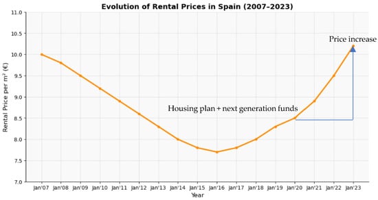 In advanced economies characterized by sustained immigration, rising inequality, and chronically underdeveloped social housing sectors, demand-side welfare interventions risk being capitalized into higher rents rather than improving housing affordability. This study investigates how Spain’s welfare state transformation—particularly the rollout of IPREM-indexed policies such as the Minimum Living Income (IMV) and the Youth Rental Voucher—interacted with migration flows and tourism-driven housing competition to reshape private rental markets between 2008 and 2025. Using harmonized national data from OPI, Idealista, INE, and the Bank of Spain (2010–2024), we apply a descriptive time-series approach that combines structural break tests (Chow and Bai–Perron), pre/post-2021 correlation comparisons, regional heterogeneity analysis, and robustness checks (including Spearman correlations and jackknife sensitivity analyses). We identify a pronounced structural break in 2021: while consular visa issuances—a proxy for combined migration and tourism inflows—showed no significant association with advertised rental prices before 2021 (r ≈ 0.27, p = 0.41), a remarkably strong co-movement emerged thereafter (r ≈ 0.90–0.92). This shift aligns precisely with the nationwide implementation of IMV, institutionalization of the Youth Voucher, and disbursement of EU Recovery and Resilience Facility funds. The effect is most acute in regions with rigid housing supply and high exposure to tourist-use dwellings (VUT)—notably the Balearic Islands, Murcia, Cantabria, and Navarre—suggesting that increased effective demand may have been absorbed primarily through price increases rather than expanded access. While our observational design precludes causal inference and the findings should be interpreted as exploratory and hypothesis-generating, the convergence of timing, magnitude, and institutional context renders a policy-mediated demand channel plausible. The results caution that, without complementary supply-side measures—such as social housing investment, rehabilitation incentives, or VUT regulation—demand-side subsidies may inadvertently reinforce housing inequality and reduce fiscal efficiency, thereby undermining the sustainability goals they aim to advance.
