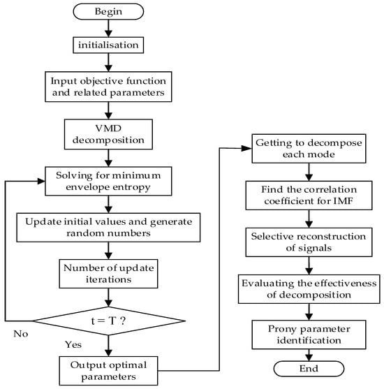 Accurate identification of harmonic components is a prerequisite for addressing resonance risks in new energy power stations. Traditional Variational Modal decomposition (VMD) is susceptible to the influence of the modal decomposition order K and the penalty factor α when decomposing harmonic signals. This paper proposes an adaptive parameter selection method for VMD based on an improved Triangular Topology Aggregation Optimization (TTAO) algorithm. Firstly, the pre-set parameters of variational modal decomposition—modal order K and penalty factor α—exhibit strong coupling. Conventional optimization algorithms cannot effectively coordinate adjustments to both parameters. This paper employs an enhanced TTAO algorithm, whose triangular topology unit structure and dual aggregation mechanism enable simultaneous adjustment of modal order K and penalty factor α, effectively resolving their coupled optimization challenge. Using minimum envelope entropy as the fitness function, the algorithm obtains an optimized parameter combination for VMD to decompose the signal. Subsequently, dominant modal components are selected based on Pearson’s correlation coefficients for reconstruction, with harmonic parameters precisely identified using the Prony algorithm. Simulation results demonstrate that under a 20 dB noise environment, the proposed method achieves a signal-to-noise ratio (SNR) of 25.6952 for steady-state harmonics, with a root mean square error (RMSE) of 0.4889. The mean errors for frequency and amplitude identification are 0.055% and 3.085%, respectively, significantly outperforming methods such as PSO-VMD and EMD. Moreover, the runtime of our model is markedly shorter than that of the PSO-VMD algorithm, effectively resolving the symmetric trade-off between recognition accuracy and runtime inherent in variational modal decomposition.