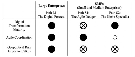The escalation of geopolitical tensions has forced global manufacturers to reconfigure their supply chains. While Digital Transformation (DT) is widely touted as a primary driver of resilience, traditional variance-based research often assumes a symmetric, linear relationship that applies universally across firms. This study challenges this assumption through the lens of Complexity Theory. Viewing supply chains as Complex Adaptive Systems (CASs), we employ Fuzzy-Set Qualitative Comparative Analysis (fsQCA) on a stratified sample of 928 manufacturers in a geopolitical high-risk zone (Taiwan). We identify equifinal pathways to Organizational Resilience, revealing a fundamental asymmetry between organizational types. The results suggest that while large enterprises rely on a resource-intensive strategy—which we term the “Digital Fortress” configurational metaphor (combining high digital maturity and agility as a core condition)—SMEs can achieve high resilience through an “Agile Dodger” configuration, leveraging operational agility and niche positioning without necessitating high digital maturity. This study contributes to the systems literature by mapping the “topology of resilience” and offering tailored configurational pathways that complement traditional variance-based perspectives in volatile ecosystems.