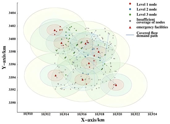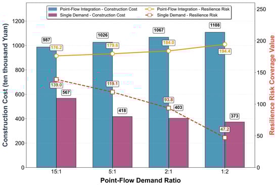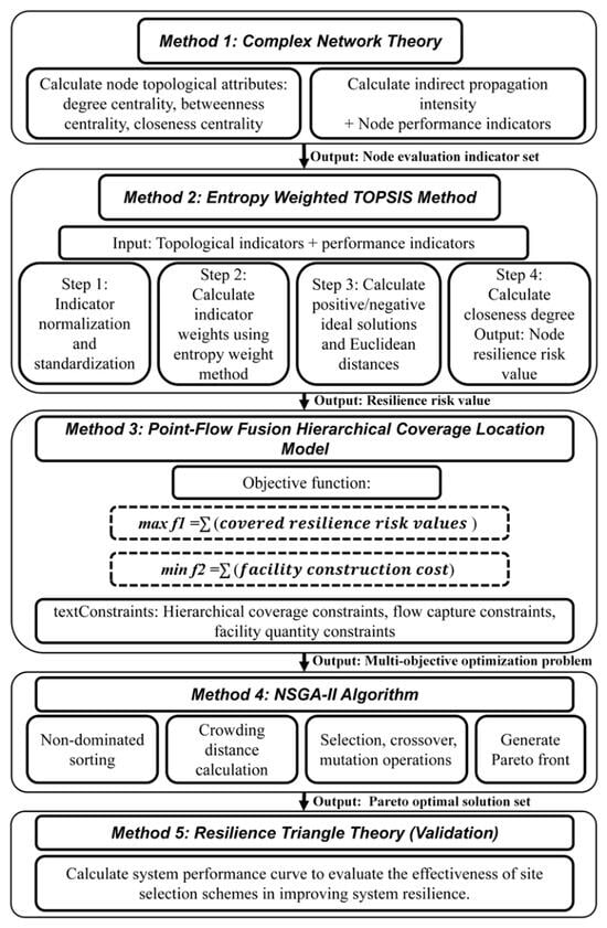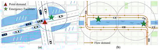 Urban transportation systems are facing increasingly severe threats from extreme weather events such as rainstorms, which can trigger cascading failures and lead to regional traffic paralysis. The strategic location of emergency facilities to enhance system resilience has emerged as a critical proactive prevention strategy. This study proposes a multi-objective hierarchical coverage location model that integrates point and flow demands to improve the resilience of urban road traffic systems under rainstorm conditions. First, the resilience risk levels of road nodes were quantified using an entropy-weighted TOPSIS method that combines topological attributes, traffic flow performance, and indirect propagation intensity. Second, a flow-capturing mechanism was introduced to address the dynamic rescue demands of stranded vehicles in motion, enabling the pre-positioning of “safe havens” along critical travel routes. The model balances two objectives: maximizing the resilience risk value of the covered demands and minimizing facility construction costs. A case study was conducted in Jianghan District, Wuhan, a flood-prone area, and the NSGA-II algorithm was employed to solve the multi-objective optimization problem. The results demonstrate that the proposed model significantly outperforms traditional single-demand location models in terms of coverage effectiveness and cost efficiency, achieving improvements in resilience risk coverage of up to 311.6% and cost reductions of up to 63.6%. This study provides a systems science perspective for pre-disaster emergency resource allocation, shifting the paradigm from infrastructure-centric protection to human-centered rescue.