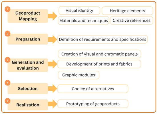 This study investigates how cultural and natural heritage can inform surface design for fashion, focusing on the development of a capsule collection of geoproducts in the UNESCO Global Geopark of Caçapava do Sul, Brazil. The purpose is to expand the scope of existing geoproducts, often limited to food and souvenirs, by introducing textile-based items that reflect local identity and contribute to sustainability. The research employed an applied, qualitative, and descriptive approach, including bibliographic review, questionnaires with local artisans, and the mapping of existing geoproducts. Data were analyzed through content analysis, and the creative process followed the method of cross-fertilization, which stimulates innovation by combining knowledge from design, geology, and craftsmanship. The design process was organized into four phases—preparation, generation of alternatives, selection, and realization—culminating in the capsule collection Aflora. The collection comprised two thematic lines: Cactaceae, inspired by endemic flora, and Geo, based on local geomonuments. The results demonstrate that surface design can mediate the relationship between fashion and heritage, producing identity-driven and innovative textile products. Three surface-design modules were produced, six product mockups, and two geoproduct prototypes, developed with materials such as wool, felt, sarja, and cotton fabrics. The study contributes theoretically by linking apparel design with heritage valorization, and practically by proposing a replicable model for geoproduct development. Limitations relate to the single case study and qualitative scope, suggesting future research on replication, eco-friendly printing, and market feasibility.