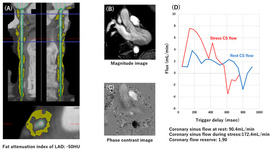 Background: The fat attenuation index (FAI) derived from coronary computed tomography angiography (CTA) is an emerging imaging biomarker of perivascular inflammation. Coronary flow reserve (CFR), assessed by phase-contrast (PC) cine cardiac magnetic resonance (CMR) of the coronary sinus, reflects coronary microvascular function. Although