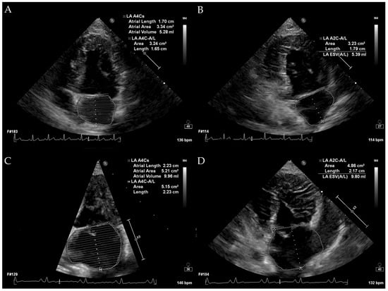 Left atrial enlargement is a key marker of disease progression and prognosis in dogs with myxomatous mitral valve disease. Echocardiographic assessment of left atrial volume provides a more comprehensive measure than linear dimensions, yet different two-dimensional methods may yield variable results. This study