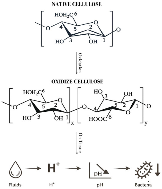 Oxidized cellulose (OC) and oxidized regenerated cellulose (ORC) are bioabsorbable polysaccharide-based materials widely used in surgery for topical hemostasis. Beyond their established hemostatic role, increasing attention has been directed toward their potential antimicrobial activity, primarily attributed to local acidification following carboxyl group dissociation.