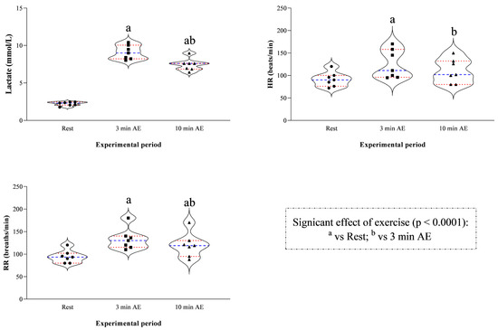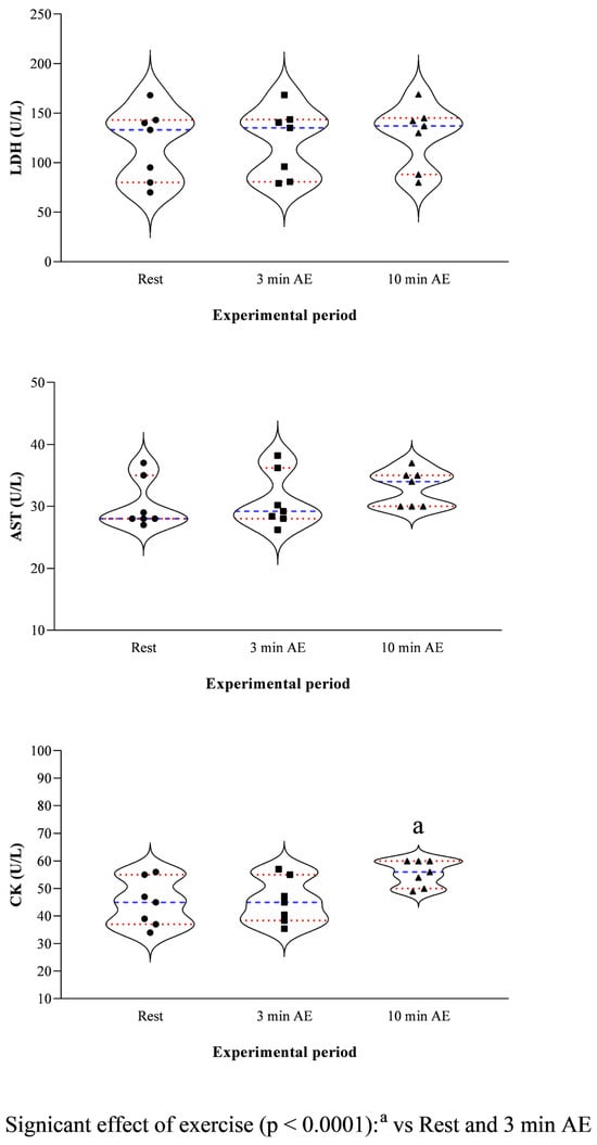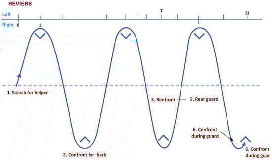 This study aimed to evaluate the trends in physiological and metabolic parameters—such as heart rate (HR), respiratory rate (RR), hematological parameters, blood lactate, and serum enzymes (LDH, AST, and CK)—in seven regularly trained working dogs during the protection phase of the IGP1 Working