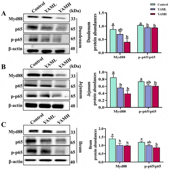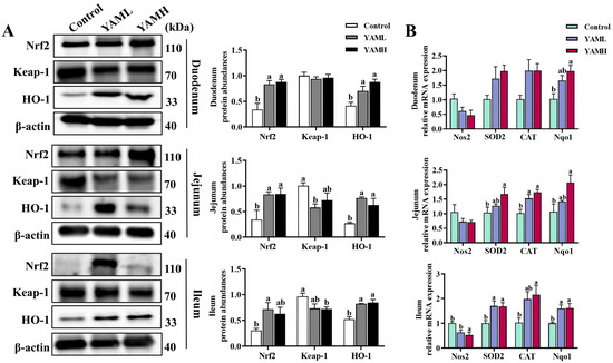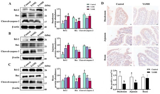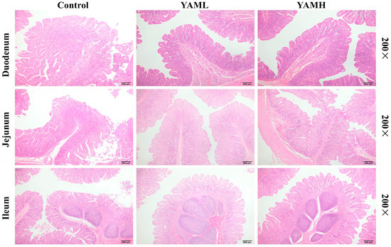 Weaning stress is frequently associated with intestinal oxidative stress, inflammatory activation, and epithelial apoptosis in piglets. This study investigated whether dietary supplementation with Chinese yam (Dioscorea oppositifolia L., YAM) alleviates weaning-induced intestinal injury by modulating the oxidative stress-inflammation-apoptosis axis. 48 weaned piglets