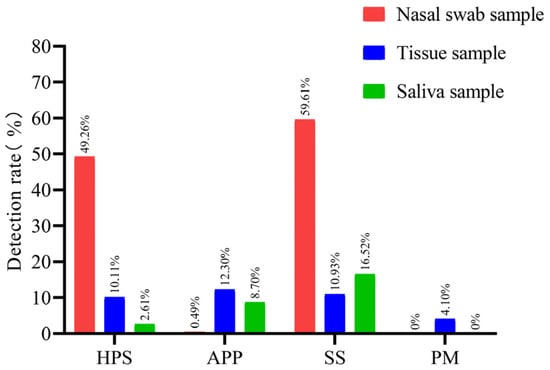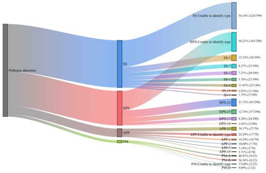 Glaesserella parasuis (formerly Haemophilus parasuis, HPS), Actinobacillus pleuropneumoniae (APP), Streptococcus suis (SS), and Pasteurella multocida (PM) are common bacterial pathogens associated with Porcine Respiratory Disease Complex (PRDC), a major cause of economic losses in the swine industry. To address this, a cross-sectional