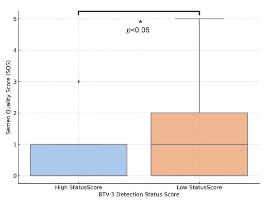 Bluetongue virus serotype 3 (BTV-3) emerged in northwestern Europe in 2023–2024, raising concerns about its potential reproductive impact on rams, similar to previous outbreaks with BTV-8. This study assessed the effect of natural BTV-3 infection on the semen quality of 49 rams in