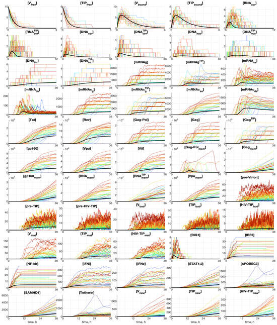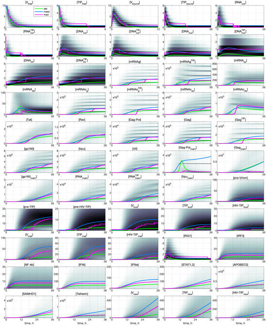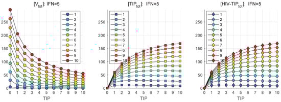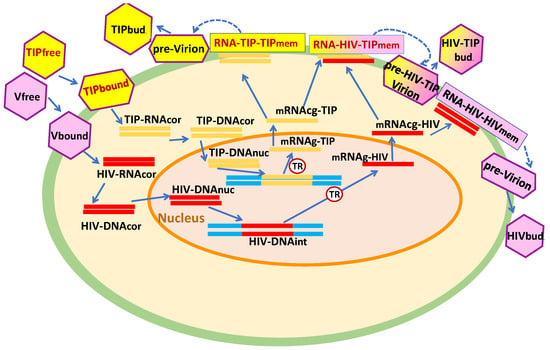 Efficient control of HIV-1 infection relies on highly active antiretroviral therapy (HAART). However, this therapy is not curative and requires continuous drug administration. Application of HIV-1 defective interfering particles (DIPs), engineered with ablations in key viral protein expressions (e.g., Tat, Rev, Vpu, and