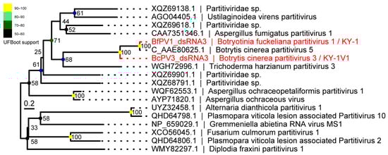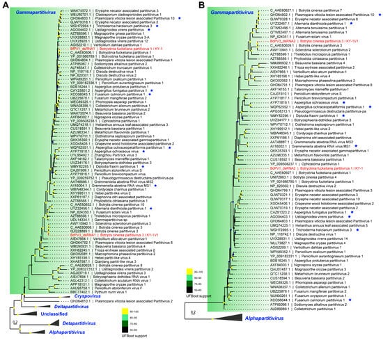 Over the past five years, research has progressively revealed a rich diversity of RNA viruses in Botrytis cinerea. In this study, we identified nine RNA viruses from the viromes of three B. cinerea strains, including five mitoviruses, one umbra-like virus, and three