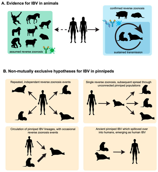 Influenza B viruses (IBV) belong to the family of Orthomyxoviridae and circulate annually in humans causing respiratory illness. Although they are considered an exclusively human pathogen, there is evidence of IBV infections in animals, including wildlife, companion animals and livestock. In addition, metagenomic