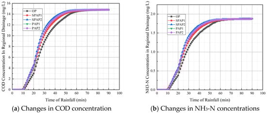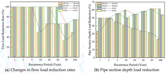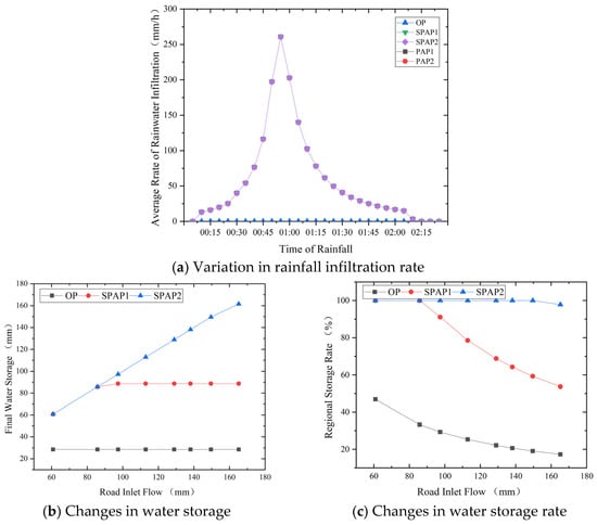 To address the severe urban flooding and the inability of urban road drainage systems to effectively resolve hydrological cycle issues, four types of permeable pavement were designed, combining the advantages of the good infiltration performance and anti-slip performance of permeable asphalt pavement. Based on the SWMM (Storm Water Management Model), road modeling and hydrological quality simulations were conducted, analyzing the surface runoff reduction rate, maximum inlet flow at the convergence node, pollutant reduction rate, and water quality purification of the four different structural permeable asphalt pavements. The results showed that the surface runoff reduction rate of the four pavements ranged from 44% to 100%, the maximum inlet flow reduction rate at the confluence node ranged from 37% to 78%, the reduction rate of the main pipe flow load ranged from 36% to 100%, the reduction rate of the hydraulic load in the pipeline ranged from 25% to 64%, the maximum water storage depth ranged from 90 mm to 177 mm, and the pollutant reduction rate ranged from 28% to 81%. This study provides the optimal combination of permeable asphalt pavements for the selection of urban pavement structures.