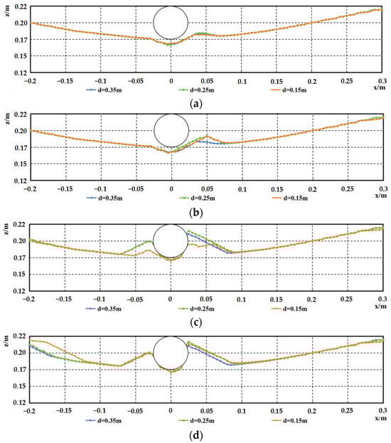 This study presents numerical results on 2D local scour around subsea pipelines positioned on sand wave seabeds under steady flow conditions, utilizing Flow-3D (v11.2) software. In the computational model, the flow dynamics surrounding the pipeline are resolved using the time-averaged 2D Navier–Stokes equations in conjunction with the Renormalization Group (RNG) k-ε turbulence model. The bed morphology is governed by the bedload transport rate, suspended load transport rate, and sediment mass balance equation. The research explores the influence of pipeline diameter and water depth on scour patterns over flat beds and investigates how the pipeline’s relative position to symmetrical sand waves affects the severity and morphology of scour. It is demonstrated that the non-dimensional scour depth decreases with an increase in pipeline diameter, whereas in shallower waters, the intensity of scour is greater for a given diameter. In the study of sand wave bed conditions, it was determined that the scour strength exhibits a hierarchical order from strongest to weakest as follows: pipeline located at the crest, downstream slope of the sand waves, pipeline situated on the upstream slope, and at the trough. It is noteworthy that the scour effect is marginally more pronounced at the crest compared to a flat seabed. Conversely, scour intensity diminishes at the other positions, particularly at the trough, where it often results in backfilling and the self-burial of the pipeline. Finally, the distributions of velocity and bed shear stress around the pipeline and seabed are presented to elucidate the flow mechanisms underlying the scour process.