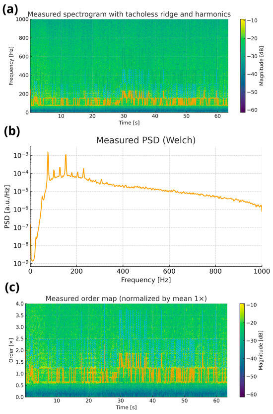 This paper presents a physics-informed, tacholess pipeline for smartphone-grade Noise, Vibration, and Harshness (NVH) diagnosis in electric vehicle powertrains. A configurable generator synthesizes labeled signals with order components (1×/2×/3×), AM/FM modulation, sub-harmonics, impact-driven ring-down near resonance, and realistic white/pink/ambient noise at phone bandwidths. A ridge-guided harmonic comb recenters orders without a tachometer and splits tonal from residual content. Interpretable features—order-invariant ratios ( , / , ) and residual descriptors (band-power, kurtosis, cepstrum/WPT)—feed light-compute models. A reproducible benchmark stresses SNR (−5…+10 dB), RPM profiles (ramp/steps/cycles), and simulated domain shift; parameter-to-feature analyses (with Sobol sensitivity and a delta-method identifiability proxy) quantify measurability under phone constraints. Across a five-fold CV, tacholess order tracking increases tonal SNR by ≥+6 dB and yields macro-F1 ≈ 0.86 with Random Forest, while ordinal severity achieves QWK ≈ 0.81 (ECE ≈ 0.06) and regression attains MAE ≈ 0.12 (R2 ≈ 0.78). All code, datasets, figures, and tables regenerate from fixed seeds with one-command builds; a data card and a sim-to-real guide are included. The result is an open, low-compute standard that couples reproducibility with physics-aligned interpretability, providing a practical baseline for EV NVH diagnostics with smartphones and a common ground for future field validation.