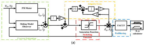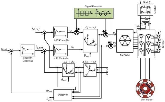 This paper presents a comprehensive sensorless control approach for interior permanent magnet (IPM) motors, integrating high-frequency injection (HFI) and model-based observer techniques to ensure accurate rotor position estimation across a wide speed range. Two HFI strategies—pulsating and rotating—are investigated experimentally and compared in combination with two observer structures: the conventional Sliding Mode Observer (SMO) and Adaptive-Gain SMO (AG-SMO). The AG-SMO dynamically adjusts its observer gain according to the estimated back-electromotive force (back-EMF) amplitude, significantly reducing chattering and improving estimation performance under varying load and noise conditions. A Frequency-Adaptive Complex Coefficient Filter (FACCF) and an Orthogonal Phase-Locked Loop (PLL) are incorporated to eliminate phase delay and enhance demodulation accuracy. Simulation and experimental results obtained using a 30 W, 20 V IPM motor demonstrate that the pulsating HFI + AG-SMO configuration achieves superior stability and noise immunity, while the rotating HFI + AG-SMO provides smoother and more accurate estimation. Overall, the proposed hybrid control framework achieves robust, high-precision, and sensorless operation for IPM motors over the wide speed range, offering a practical solution for applications such as inverter-driven compressor systems operating in noisy environments.