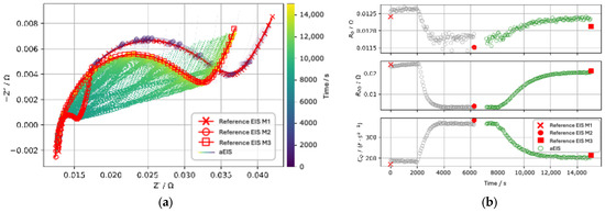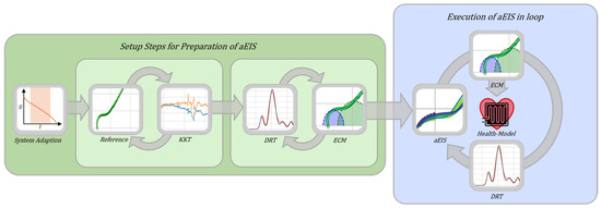This paper presents an innovative approach to modified electrochemical impedance spectroscopy (EIS) for real-time health monitoring of galvanic cells, particularly batteries and fuel cells in high-dynamic applications such as vehicles. Traditional methodologies, including cell voltage monitoring, offer limited diagnostic value. In contrast, conventional EIS provides comprehensive system insights; however, its applicability is constrained by prolonged measurement durations, rendering it impractical for dynamic conditions. This article presents a method that iteratively selects specific frequency bands and key points, thereby substantially reducing measurement time without compromising critical system information. This approach was initially validated using battery systems, which exhibit well-regulated operational behavior, thus facilitating a rigorous evaluation of the concept. Experimental results demonstrated that the modified EIS method achieves performance comparable to conventional EIS but with measurement times reduced by up to 92%. This validation underscores its reliability and precision, thereby supporting proactive maintenance strategies and extending system longevity. The reduction in measurement time enables more precise analyses across diverse dynamic operational spectra. Consequently, this approach constitutes a robust solution for health monitoring of fuel cells and batteries in dynamic environments, capitalizing on the advantages of EIS while addressing its inherent limitations.