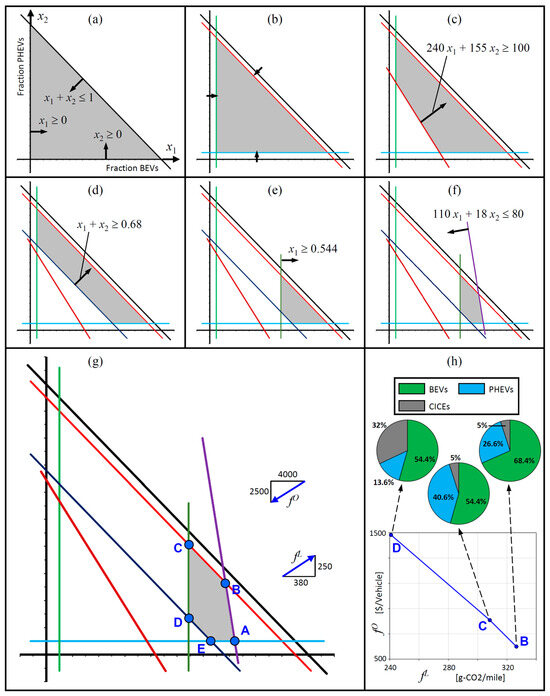When looking towards the goal of reducing greenhouse gas (GHG) emissions, automotive manufacturers face several challenges when planning future vehicle offerings in different markets. The planned vehicle offerings must cope with uncertainties in the supply chains of critical materials and adhere to regulatory requirements in different regions, all while appealing to customer preferences and maintaining low cost. Regulatory requirements, which are often based on tailpipe GHG emissions, do not necessarily align with Lifecycle Analysis (LCA) of GHG emissions, which becomes yet another challenge towards attaining sustainability goals. Planning the future mix of vehicles to be manufactured under all such considerations can be a complex task, often relying on methods with poor transparency, unguaranteed optimality, or requiring difficult-to-predict a priori knowledge. This paper considers the special case of a short time window (one future model–year), which allows for modelling the future planning decisions as a linear programming (LP) problem, which in turn, can be solved to global optimality via well-established algorithms, such as Dual-Simplex. The proposed formulation is demonstrated via one simple example, as well as a scaled-up study with two regions, two vehicle size categories, and four powertrain configurations. A key insight that the proposed formulation is able to demonstrate in the scaled-up study is how the optimum (lowest) LCA GHG solution depends on the availability of battery materials, ranging from an increased share of hybrids under low battery supply to an increased share of electric vehicles for abundant battery supply.