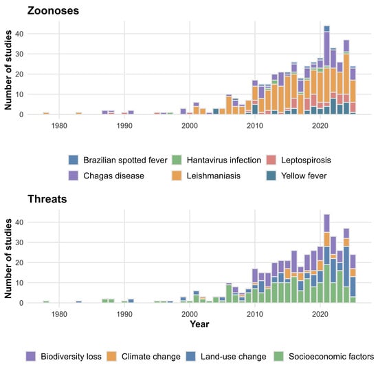 Zoonotic diseases represent an important interface between socio-environmental change and public health, yet integrative assessments linking ecological and social determinants remain limited in tropical regions. This study mapped how socio-environmental drivers have shaped research patterns on zoonotic diseases in Brazil. We integrated socio-environmental